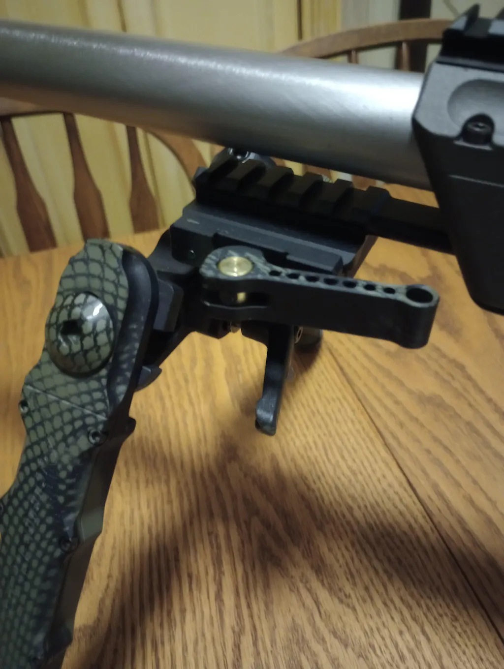 This bipod offers canting capability, secured with a sturdy and adjustable throw lever. The lever allows for precise tension control and locks the canting motion into place. It can also be repositioned for convenience or fine-tuned for optimal tension once a stop is reached.